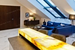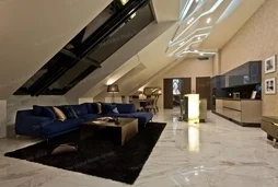 Индивидуально разработанные решения для стен в сочетании со светодиодным освещением делают квартиру по-настоящему впечатляющей. Потолок из гипса ручной работы также является особым решением. Украшения от известных дизайнеров (Kare, Bo Concept, Einholtz и т. д.) придают квартире по-настоящему современный вид. Покрытия со специальными узорами, моющиеся обои Marburg, декоративные поверхности, текстиль и другие дополнительные элементы сочетаются с достаточной элегантностью.